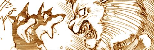 と叫んだ。僕はすぐに両腕を振り上げて、そしてワープドッグ目掛け手を伸ばす。5m程の位置に横たわる犬を、僕は鷲掴みにして押え込んだ。ワープドッグを押え込み、身動きが取れなくすれば、瞬間移動のプロセスが出来ない。 僕の両腕でワープドッグをぐるぐる巻にして、そのまま引き寄せる。瞬間移動が出来なくても狂暴な犬には変わりない。引き寄せる僕目掛け、ワープドックは二つの口を大きく開いていた。ここで、僕の『DMAN』としての第2の能力『顔変化』のお披露目。