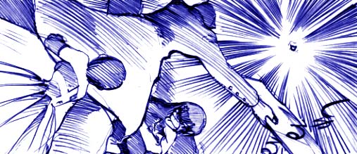 ふわふわと優雅に飛ぶ8個の50円くらいのおもちゃの飛行機は、うまい具合に8個の光にたどり着き、空中で大爆発を起こした。 1つ…2つ…3つ…会場内で次々と、おもちゃの飛行機に触れたミサイルは爆発していき、爆風は会場の天井に大きな穴をあけていく。…でも、その派手な花火は7つで終了。飛鳥は一機だけ空振った。