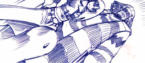 雅扮する『ベンジャミン』は、ざくろ扮する『ピースケ』にそう答え、石橋さんの真ん前に立つ。そして、シャァァァァっと言う音が聞こえた。電柱に隠れている俺の目は、多分凄く飛び出していたに違いない。石橋さんの真ん前に位置する雅は『鉄刃刀』を抜いたんだ。しかも、愛刀の真剣『岩豪丸』。ギラリと黒光りする真剣『岩豪丸』は、戦国時代から幾度と無く人の血を吸ってきた牙京家に先祖代々伝わる名刀。その『岩豪丸』を石橋さんの目の前で、高々と振り上げた。超危な過ぎる!